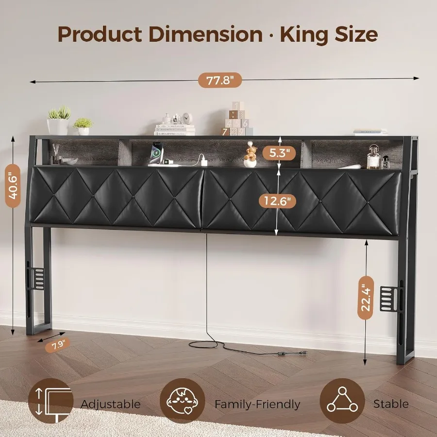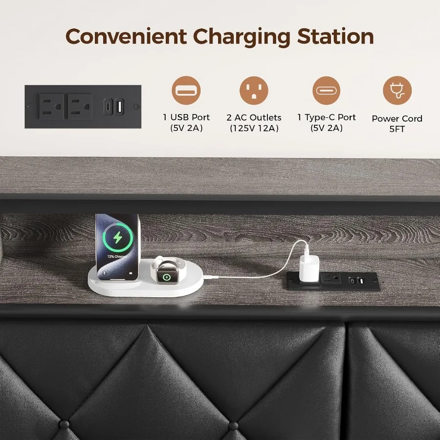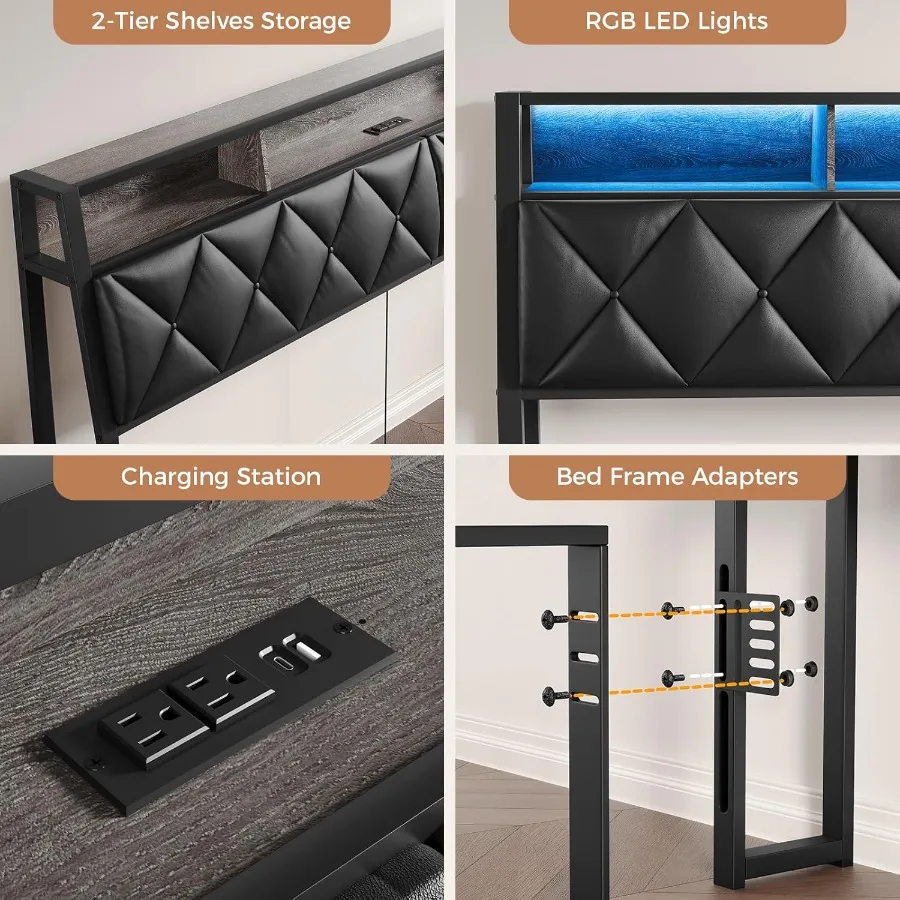 Upgrade your bedroom with this King Size Upholstered Headboard, combining elegance, functionality, and modern convenience. Featuring built-in LED lights and a charging station, it provides ambient lighting and a practical spot to charge your devices while keeping your bedside organized. The plush upholstery adds a luxurious touch and soft backing for comfort while reading or lounging in bed. Designed with integrated storage, it offers extra space for books, gadgets, or small essentials, keeping your bedroom clutter-free. Compatible with king-size bed frames, this headboard attaches securely while enhancing the overall aesthetic of your room. Crafted with high-quality materials, it ensures durability and long-lasting use. Perfect for modern homes, this headboard merges style, technology, and practicality into one sophisticated bedroom centerpiece.